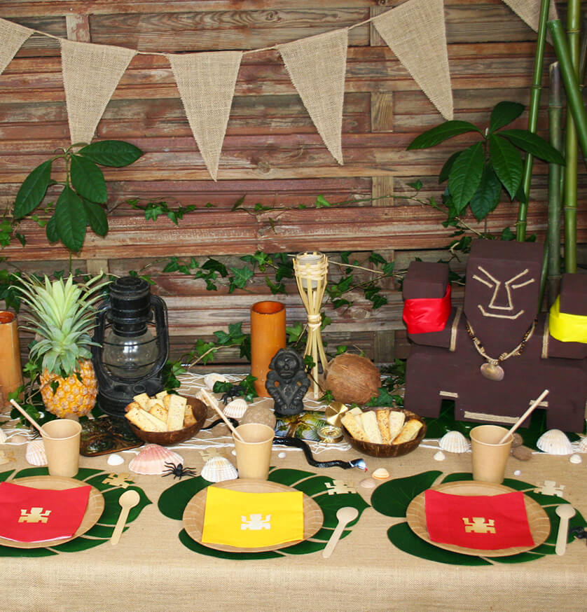 Plongez dans l’univers de la Tribu des Sables et transformez votre fête en aventure tropicale ! 🌴 Ce pack décoration tout compris réunit tout le nécessaire pour une ambiance d’île déserte : nappe en toile de jute, coquillages, totems, palmiers, torches et vaisselle assortie. Idéal pour vos soirées entre amis, anniversaires ou événements à thème exotique !