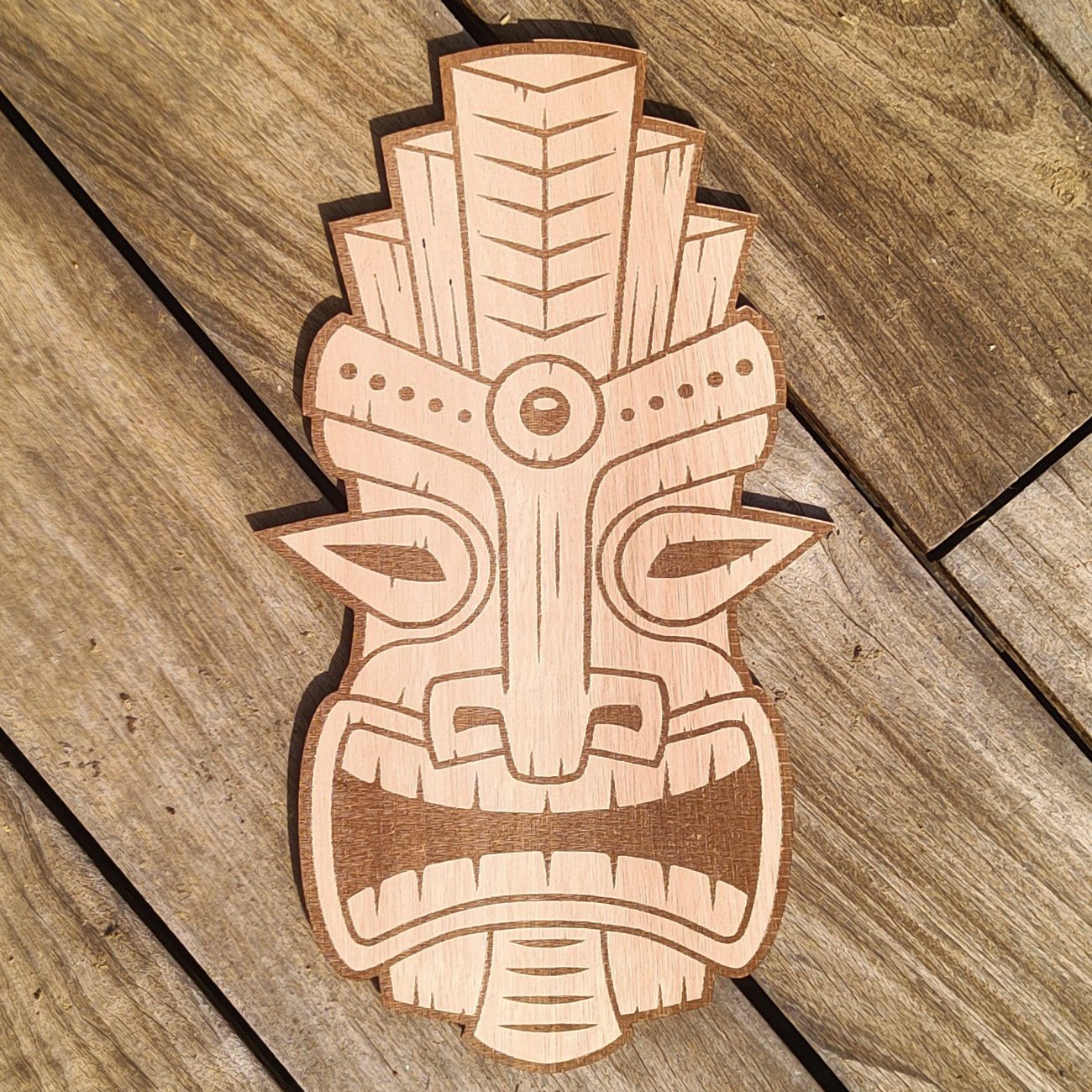 - Un masque de tiki en bois.
