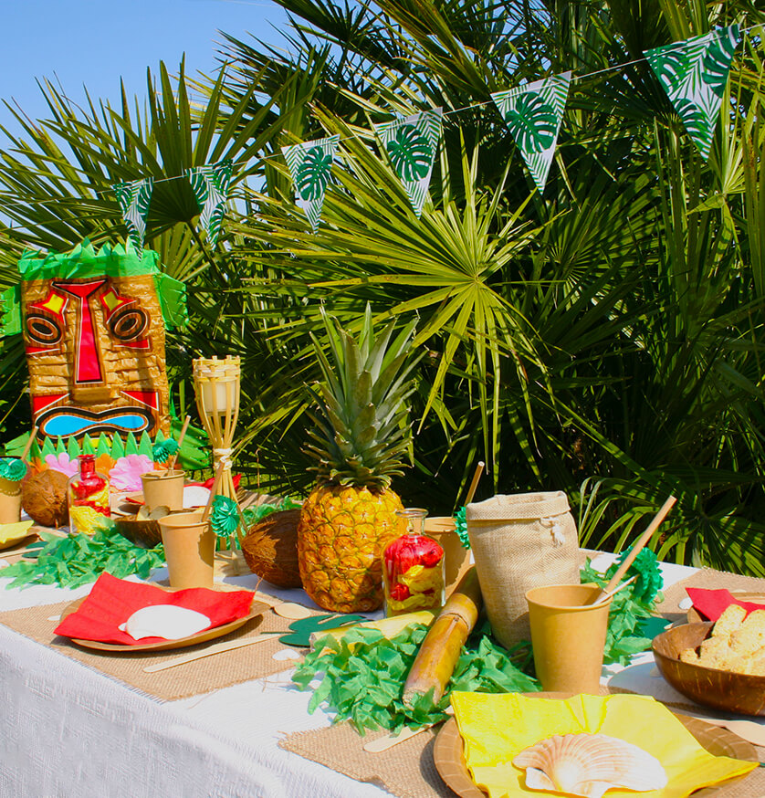 Pour émerveiller vos invités, et les plonger dans l'aventure du bout du monde, voici ce que contient le pack de décoration Tiki tout compris :